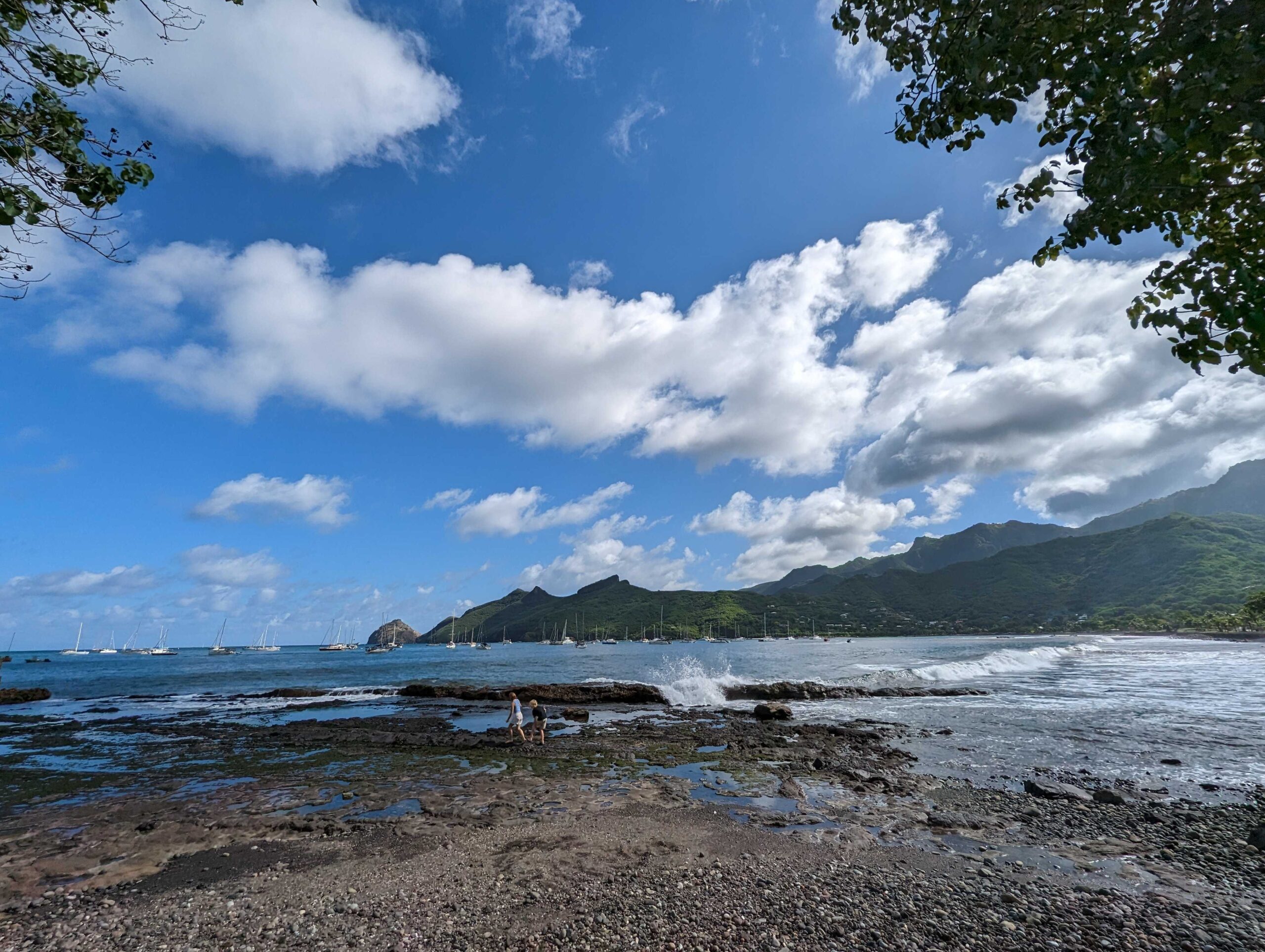This week I've been watching the markets from Nuku-Hiva in the Marquesas Islands. We're anchored in Taiohae Bay, surrounded by incredible beauty and the mountains that lock us in safe and tight here. One of the only real challenges to trading from around the world is dealing with the changing time zones. Here in Nuku-Hiva they compound the problem by adding in a half-hour time zone. So, while the stock market opens at 9:30, here we ring the trading bell at 4:00 am. Sure, it's early, but when you have the whole afternoon to swim and explore, going to bed a little earlier is but a minor inconvenience.